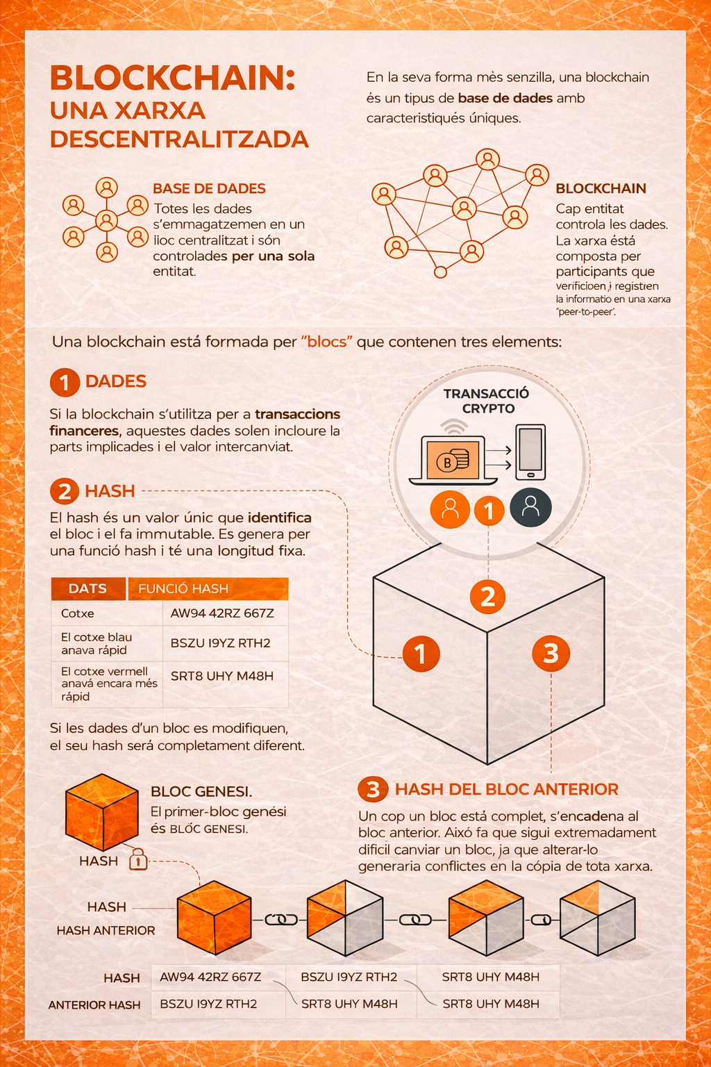 Ja ho saps perquè has llegit els nostres articles anteriors; però vaja, no està de més un resum per si ets nou aquí. Les criptomonedes són actius digitals que funcionen gràcies a la tecnologia blockchain, un sistema descentralitzat que registra totes les transaccions de forma segura i transparent. Les criptomones són diners digitals que no depenen de cap banc ni govern ni organització i que permet, per tant, el lliure intercanvi d'actius entre usuaris. Directament. Sense intermediaris i sense taxes, però amb total garantia de traçabilitat gràcies a uns registres impossibles d'alterar una vegada validats. Sense control Z. És una barreja de innovació, seguretat i llibertat financera. Per contra, les seves dues contrapartides més grans són la seva volatilitat o una regulació global encara en desenvolupament.
