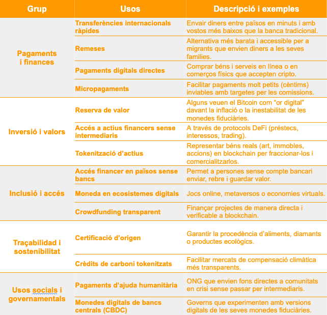 - Per a transferències internacionals ràpides o accés financer en països sense bancs, són molt més útils i manejables que qualsevol altra divisa.