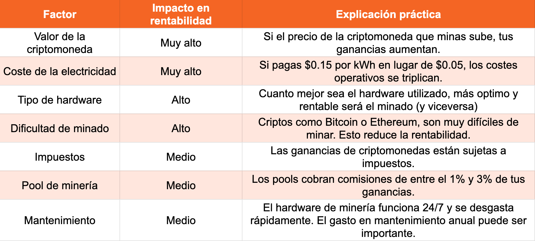 Després de tot el que hem vist, pots pensar que minar criptomonedes és una manera senzilla d'obtenir ingressos passius. Perquè ull perquè no és tan senzill. La rendibilitat de la criptominería depèn de molts factors variables que has de valorar. Aquests són: