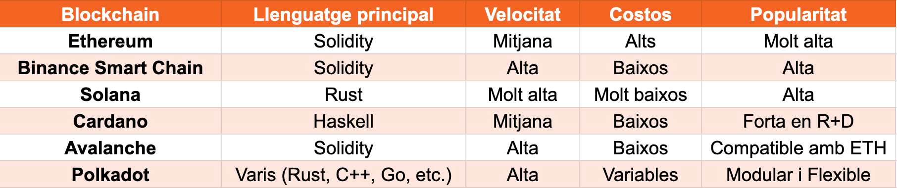 Binance Smart Chain (BSC) ha guanyat terreny gràcies a la seva compatibilitat amb ETH i als seus baixos costos per transacció, així com la seva magnífica integració en el exchange associat. És una opció habitual per als qui busquen velocitat sense sacrificar funcionalitat. Al costat d'ella emergeix Solana (SOL), que destaca per la seva rapidesa (pot processar milers d'operacions per segon). Això sí, el seu enfocament, principalment en memecoins, encara no la fa veure's com una solució veritablement global.