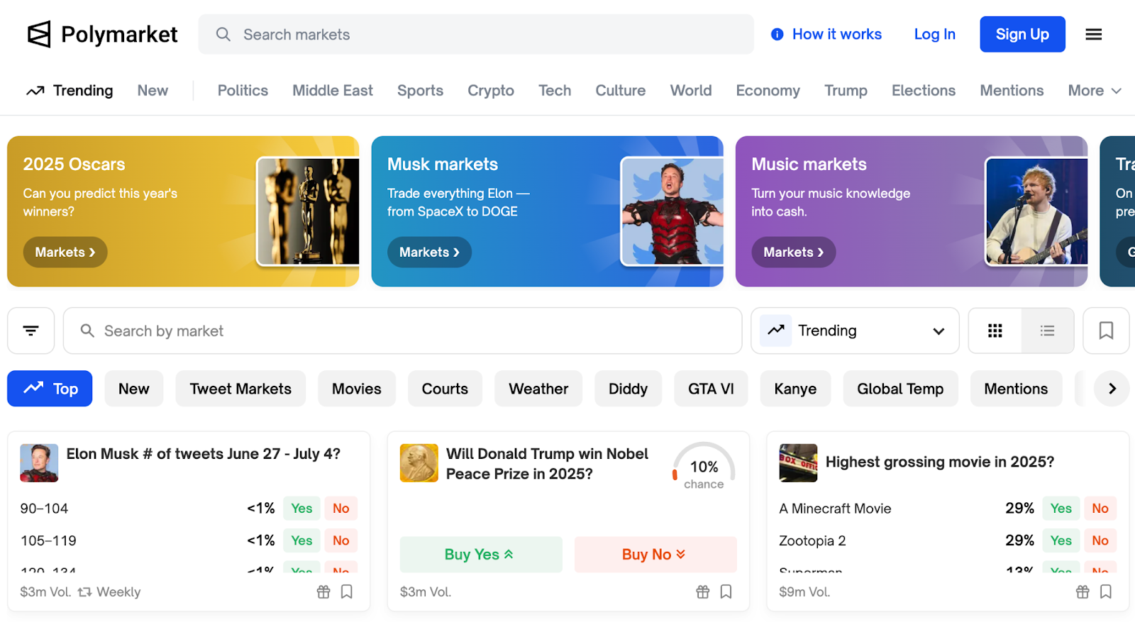 For beginners, Polymarket is the easiest to try. Just connect a wallet and start browsing.