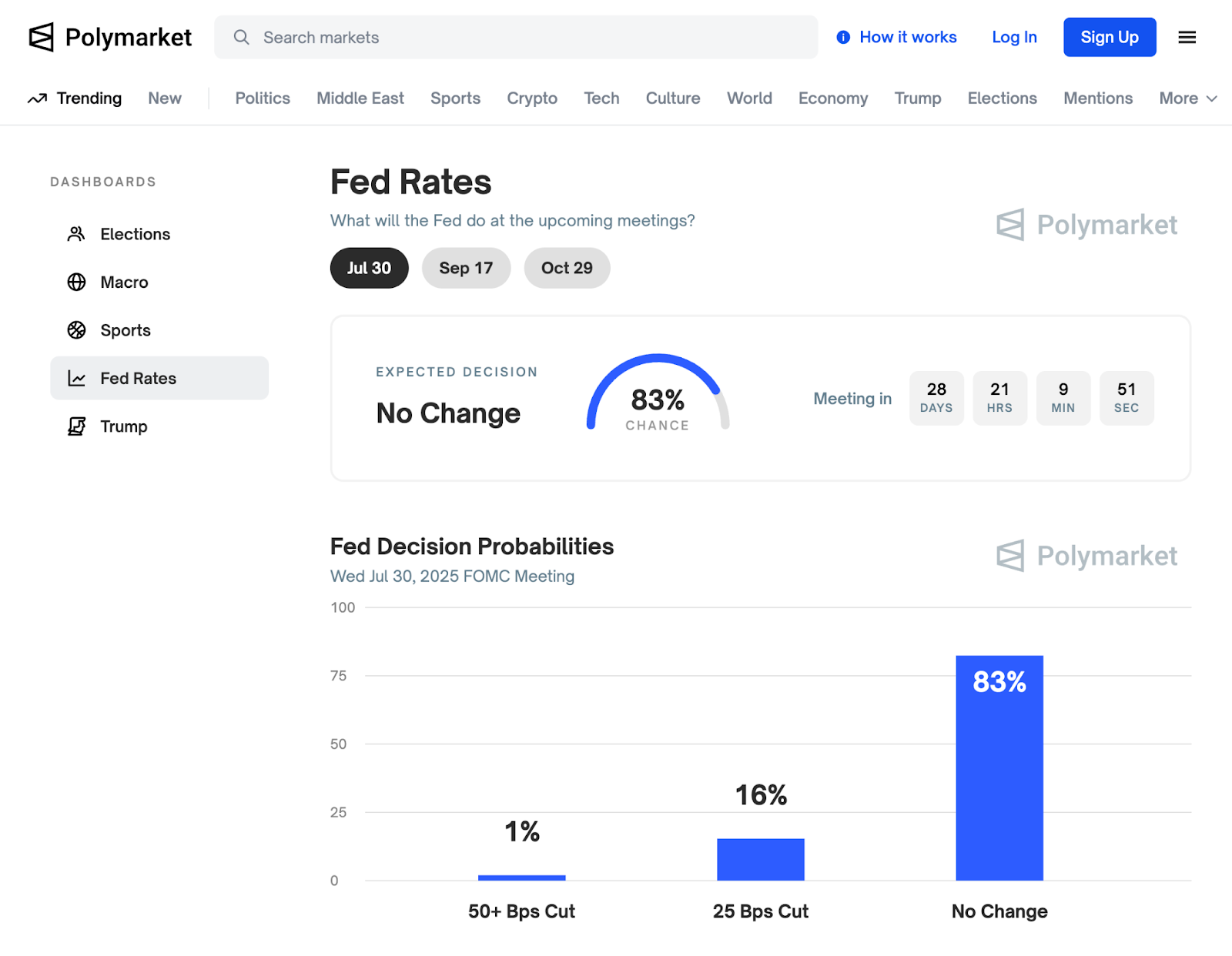 Instead of pundits and clickbait, future newsrooms might display market-based odds as editorial signals. For example: “96% chance the Fed raises rates next quarter” hits very differently than a CNBC panel saying “maybe.”