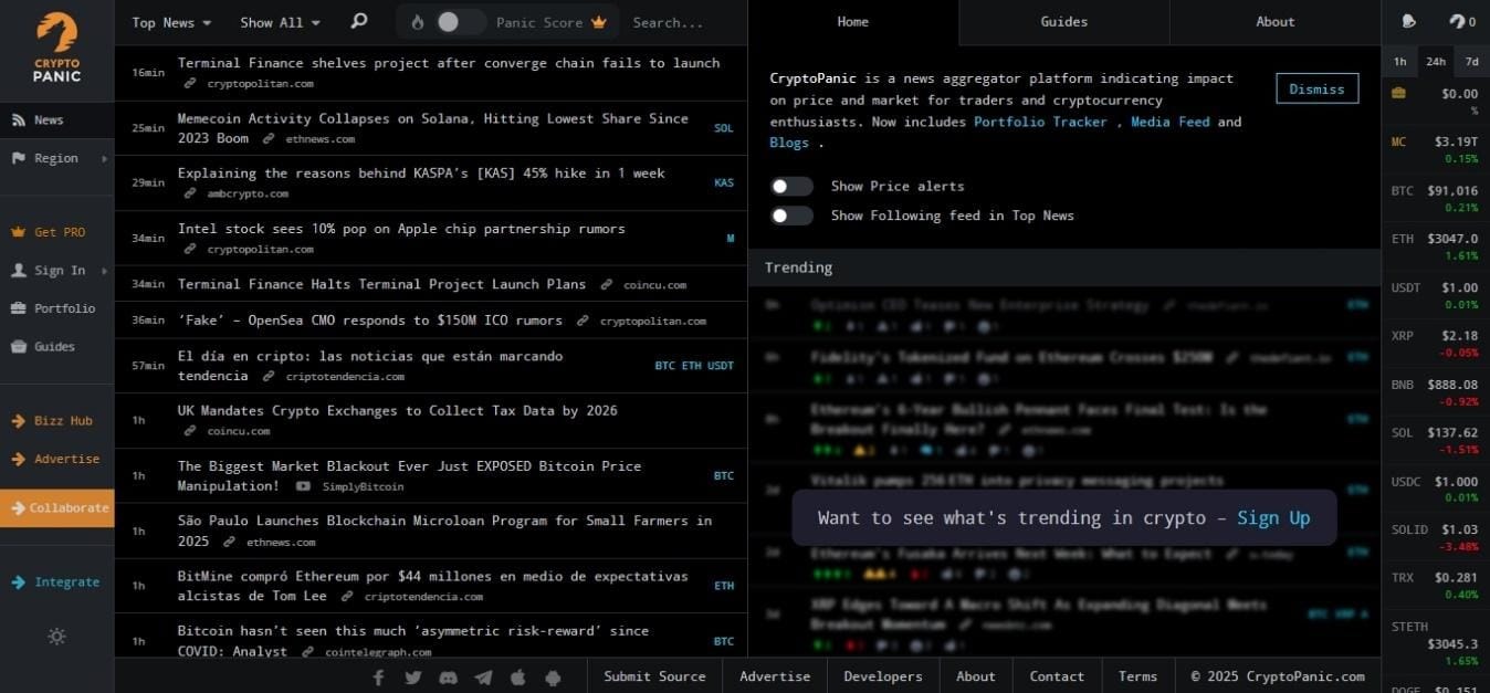 Beyond your own holdings, make sure to monitor the news, too. Some reliable crypto-related portals include CoinDesk, CoinTelegraph, Decrypt, The Block, BeInCrypto, and Bitcoin Magazine. To see all the news gathered in one place, you could use a news aggregator like CryptoPanic.