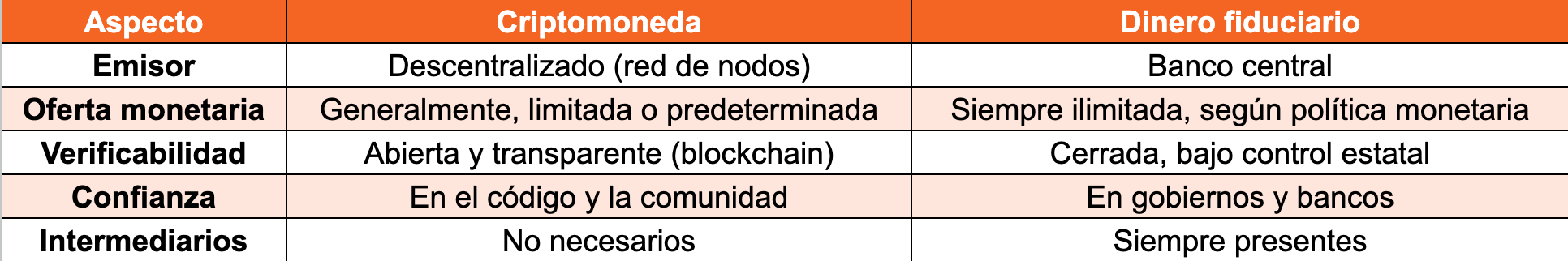 ¿En qué se diferencia una criptomoneda del dinero fiduciario tradicional?